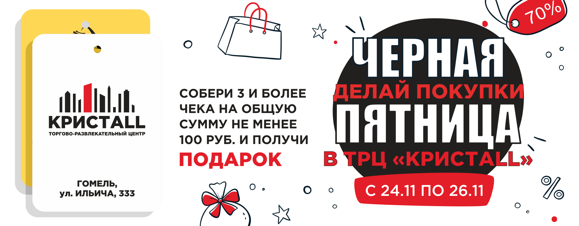 С 24 по 26 ноября в ТРЦ КРИСТАLL будет проходить рекламная акция «Черная пятница».